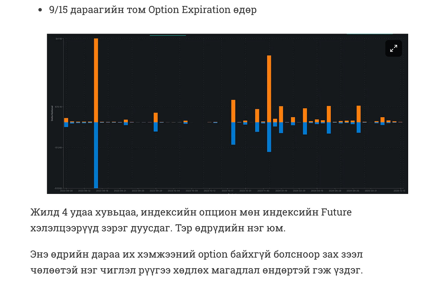 Жилд 4 удаа болдог хамгийн том Option Expiration (expiration = Опцион хэлэлцээрүүд хугацаатай байдаг. Хугацаа нь дуусах өдрийг expiration гэдэг) өдөр гэж ярьсан билээ. Миний хувьд саяхнаас энэ датаг дагадаг болсон учраас та нартайгаа адилхан суралцаж яваа билээ.
